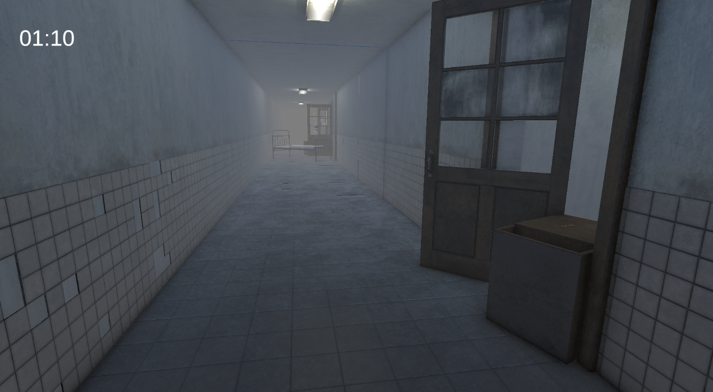 Realistic psychological horror atmosphere built through sound, shadows, and isolation.